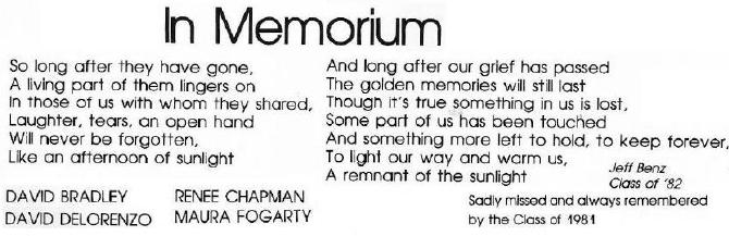 NFA Class of 1981 Memorial Page