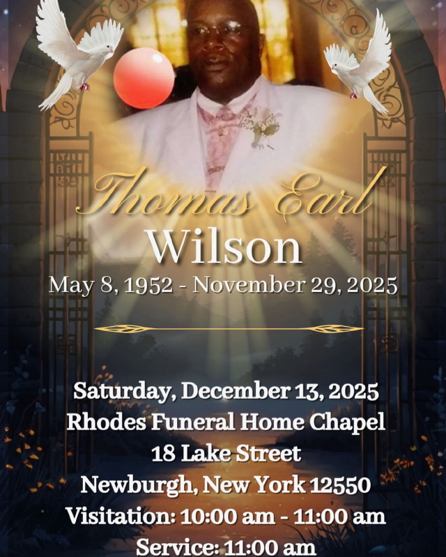 Thomas Earl leaves to cherish his memory his son Jerome Newkirk of Raleigh, NC, and his daughters Tomesha E. Wilson (Timothy Page) and his beloved daughter Patrice Nichole Wilson (predeceased 2024), both of Newburgh, NY. He is survived by his sisters Emma L. Johnson (Samuel Allen Johnson) of Newburgh, NY, and Debra Borden-White (Larry White) of Newburgh, NY, and his brothers Marshall Wilson of Clarksville, TN, and Bishop John R. Borden (Cassandra Dale Borden) of Newburgh, NY. He also leaves behind a large circle of nieces, nephews, cousins, and friends whom he loved, cherished, and protected deeply. He was very close to his nieces and nephews and maintained a special bond with them.