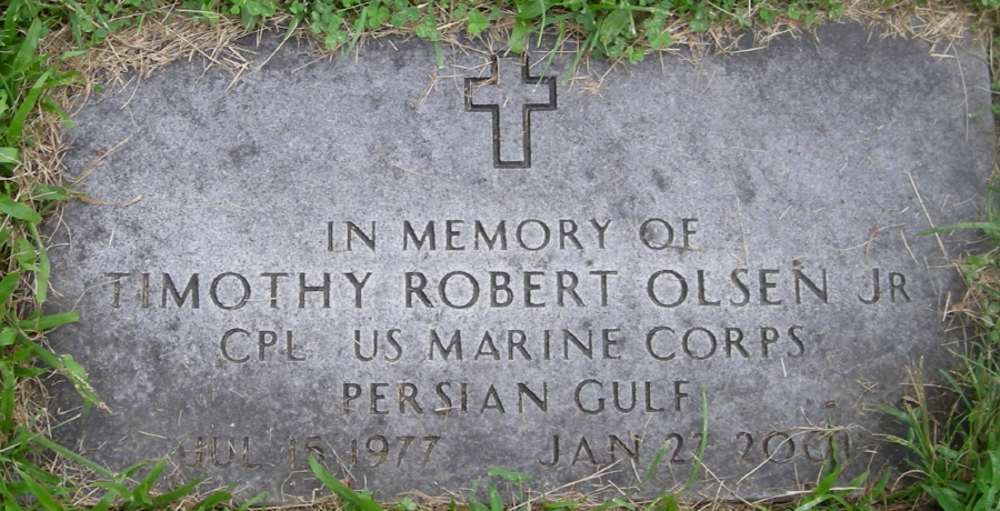 23-year-old son, Marine Cpl. Timothy Olsen Jr., was swept from a cliff in